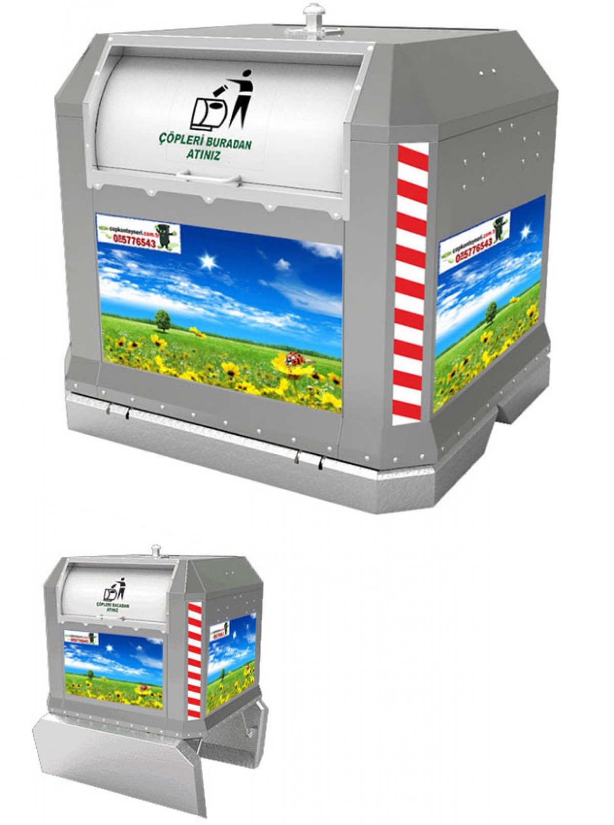 • Yerüstü modeller tamamen yerin üzerinde olup herhangi kazı hafriyat çalışması gerektirmemektedir. İçerisinde 200 litreye kadar çöp suyu veya yağmur suyu biriktirmeye elverişli olan sistem bu suların dışarı taşmasına izin vermemektedir. 3 – 5 m3 arası ölçülerde üretilen sistemler çevre ve yerleşim düzenine göre istenilen renkte olabilir.